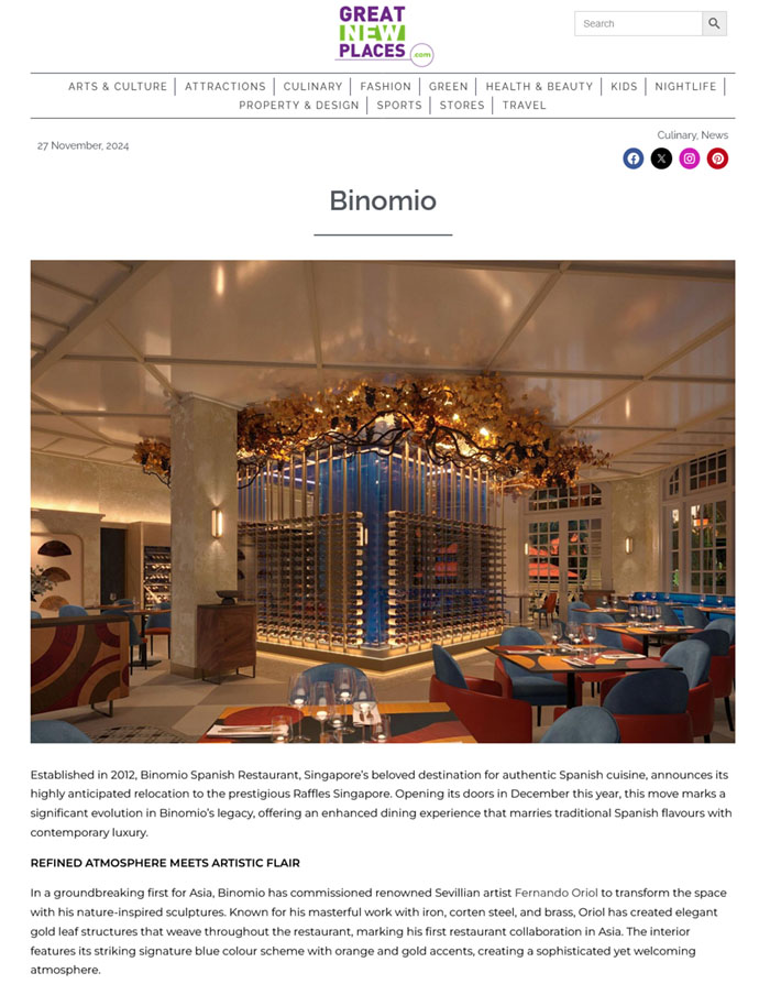 Established in 2012, Binomio Spanish Restaurant, Singapore’s beloved destination for authentic Spanish cuisine, announces its highly anticipated relocation to the prestigious Raffles Singapore. Opening its doors in December this year, this move marks a significant evolution in Binomio’s legacy, offering an enhanced dining experience that marries traditional Spanish flavours with contemporary luxury.