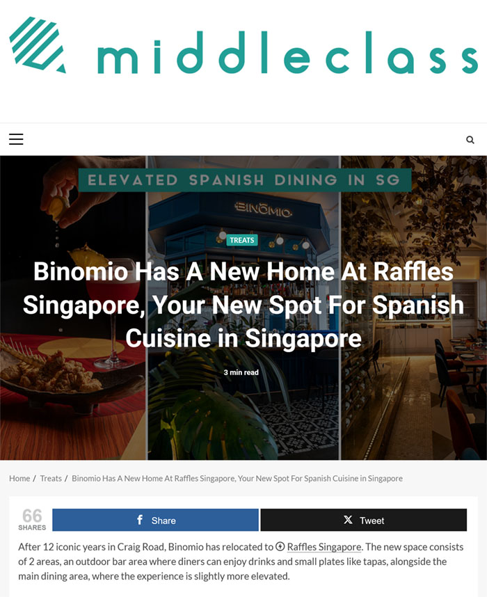 middleclass.sg: Binomio Has A New Home At Raffles Singapore, Your New Spot For Spanish Cuisine in Singapore